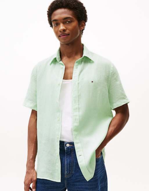 Tommy Hilfiger Short sleeve regular fit linen shirt in light green