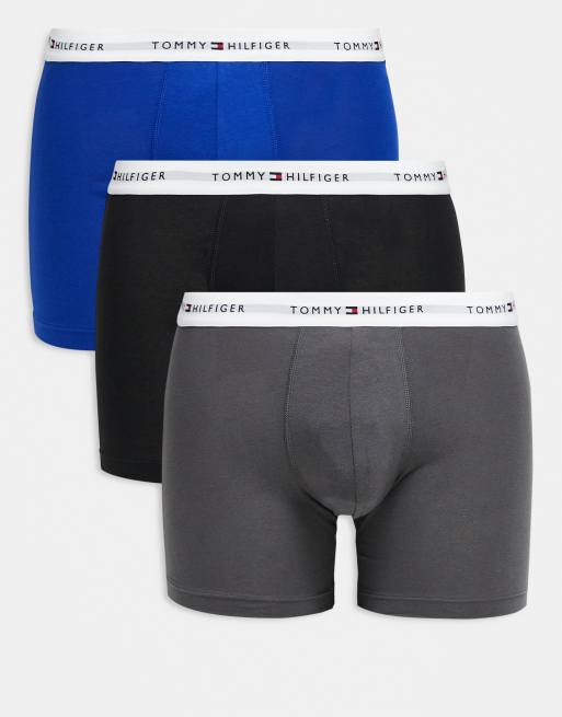 Tommy Hilfiger signature cotton essentials 3 pack boxer briefs in blue/grey/black