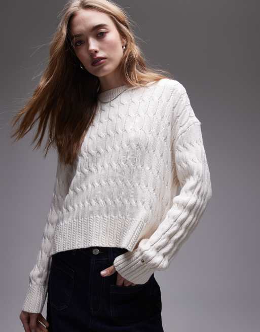 Model is wearing: S - UK 8 - Cable knit: layered, crossover pattern