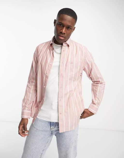 Tommy Hilfiger stripe regular fit long sleeve shirt in pink