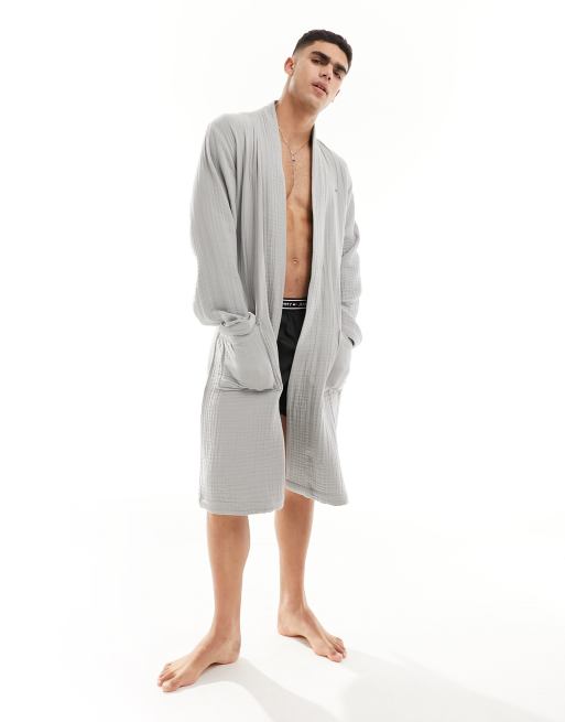 Tommy Hilfiger Textured Wrap Bathrobe in Grey