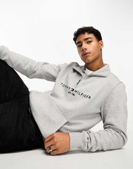 Tommy Hilfiger tommy logo mock neck sweatshirt in light grey heather