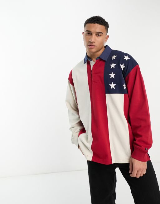Tommy Hilfiger x Shawn Mendes long sleeve american flag rugby shirt in multi