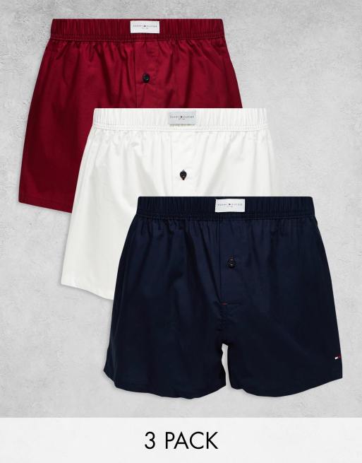 Tommy Hilfiger 3 pack woven boxer in blue, white and red