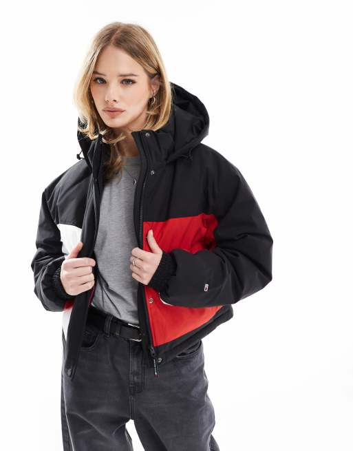 Tommy Jeans Back logo colour-blocked puffer jacket in multi