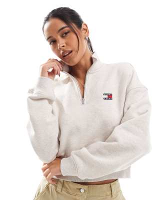 Tommy Jeans Boxy half-zip cropped sweatshirt in white