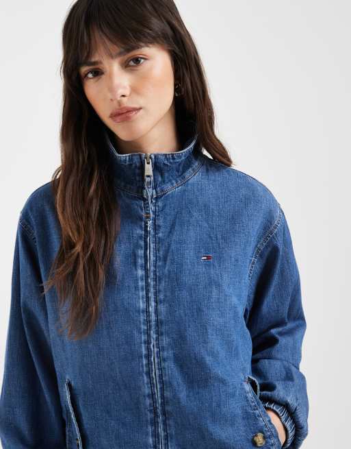 Tommy Jeans chambray funnel neck jacket in mid wash blue