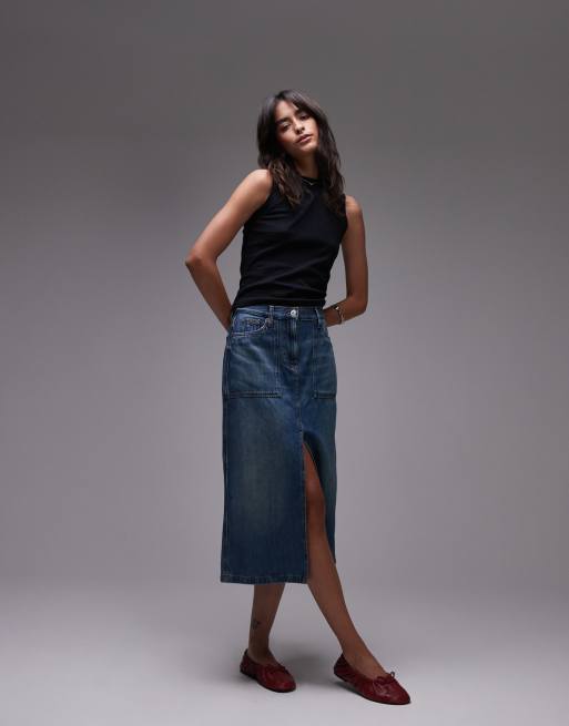 Tommy Jeans Claire utility denim midi skirt in dark blue