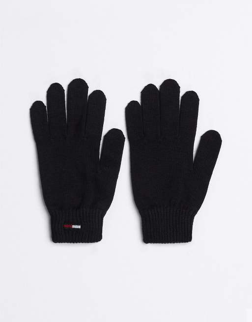 Tommy Jeans Elongated flag rib-knit gloves in black