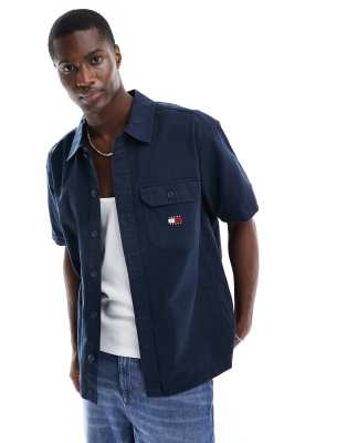 Tommy Jeans essential solid short sleeve overshirt in navy