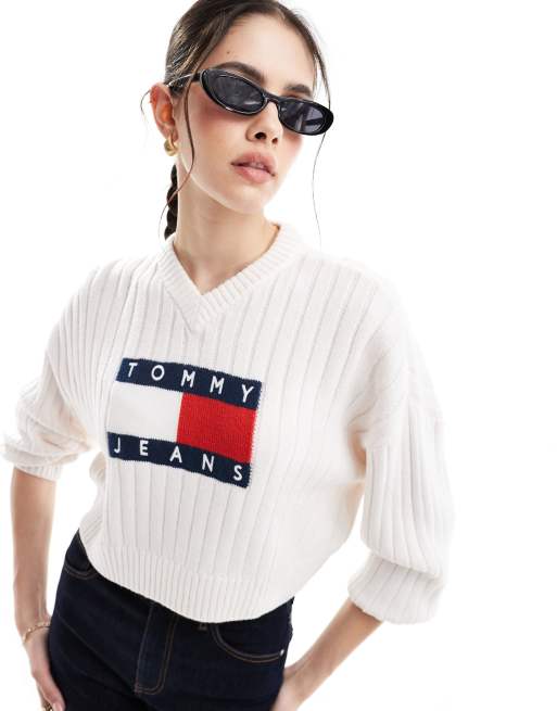 Tommy Jeans flag knit jumper in white