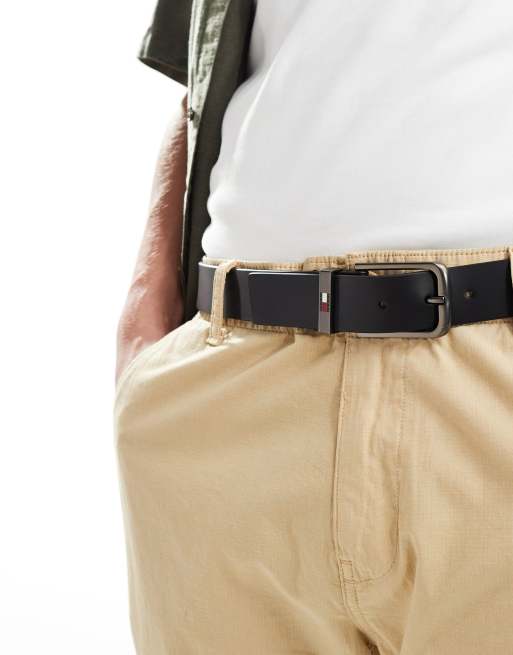 Tommy Jeans flag leather 3.5cm belt in black