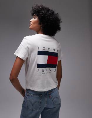 Tommy Jeans flag logo backprint t-shirt in off white
