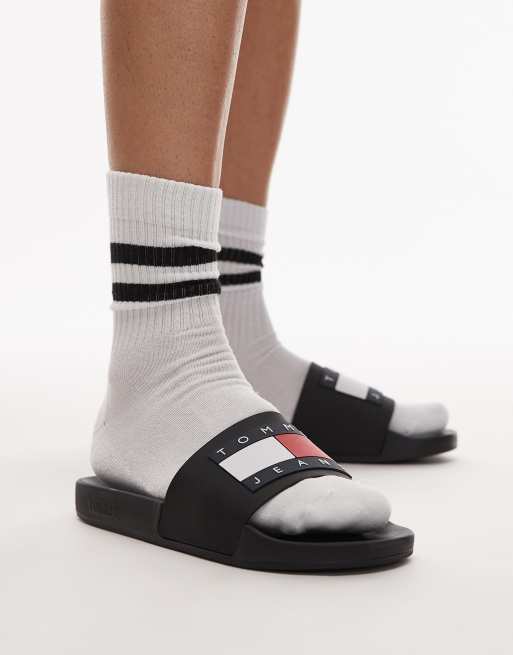 Tommy Jeans flag sliders in black