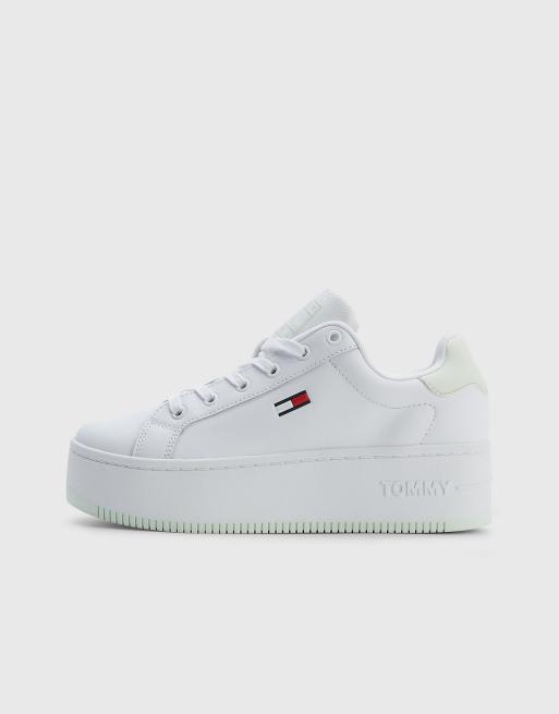 Tommy Jeans flatform trainers in white and mint green