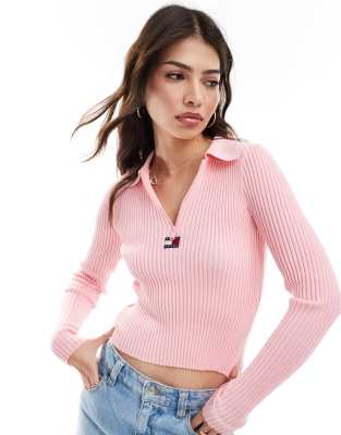 Tommy Jeans half zip rib badge jumper in pink