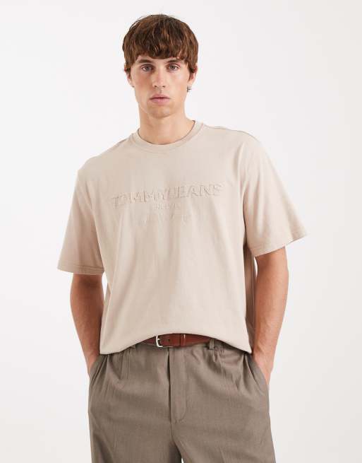 Tommy Jeans lifted classic centre logo t-shirt in sand