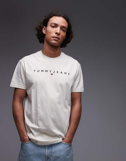 Tommy Jeans linear logo t-shirt in beige