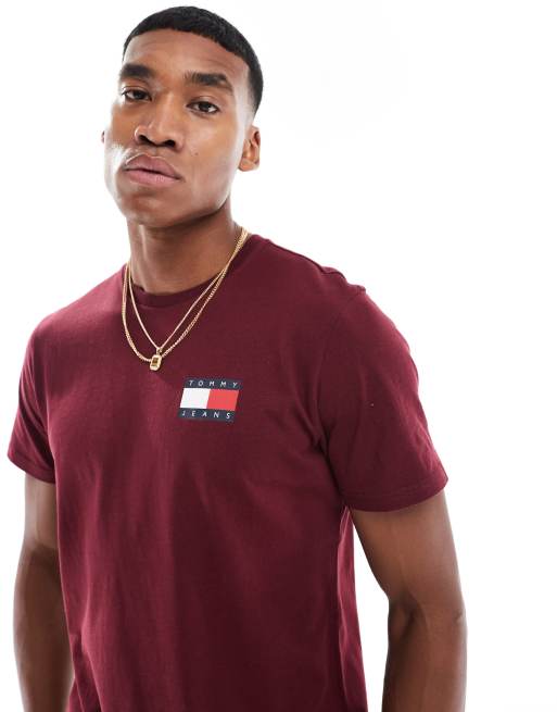 Tommy Jeans Logo Slim T-Shirt in Dark Red