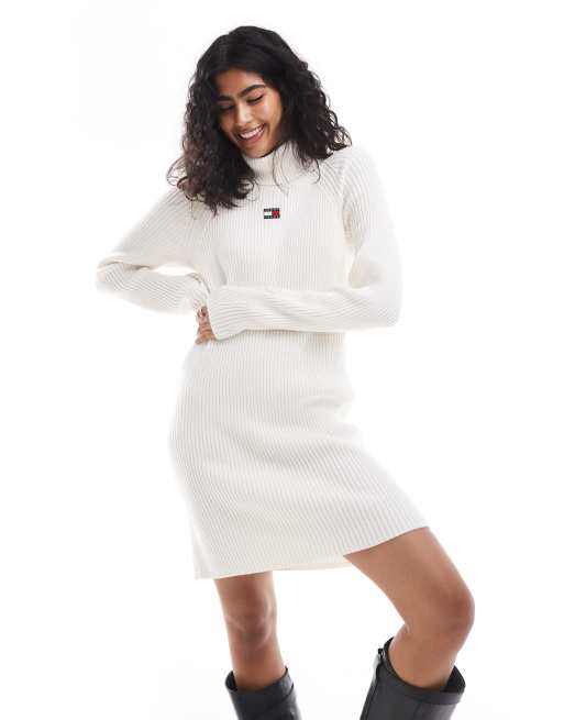 Tommy Jeans Mock Turtleneck Jumper Mini Dress in Beige