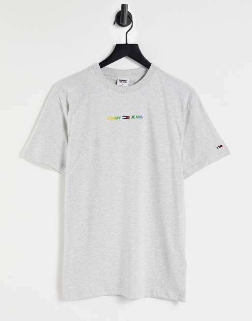 Tommy Jeans multicolour linear logo t-shirt in light grey marl