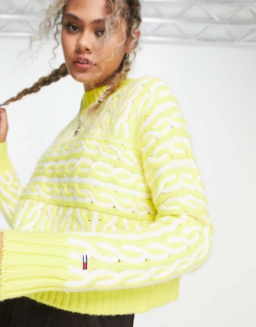 Tommy Jeans oversized plaited cable knit sweater in yellow