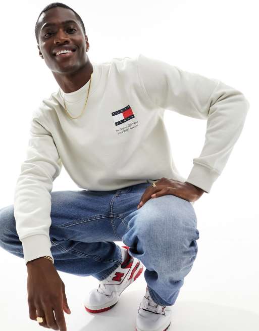 Tommy Jeans regular essential flag crew neck sweatshirt in off white