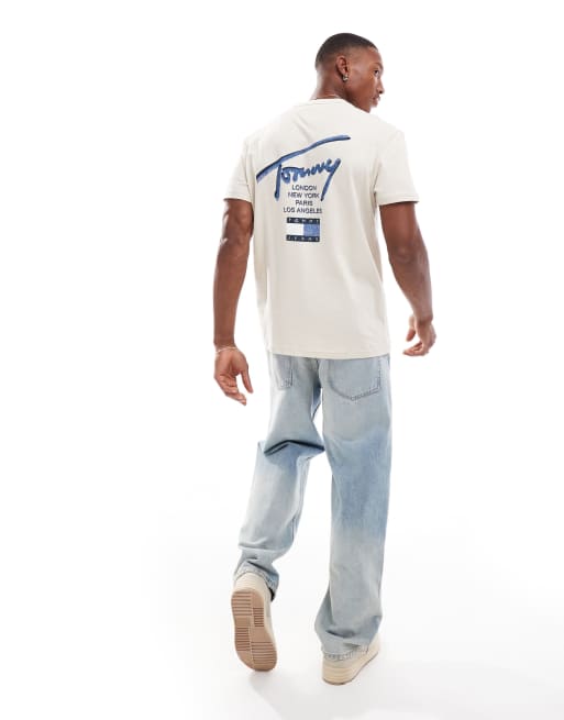Tommy Jeans regular signature back print t-shirt in off white and blue