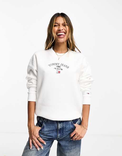 Tommy Jeans relaxed luxe authentic logo crewneck sweatshirt in white