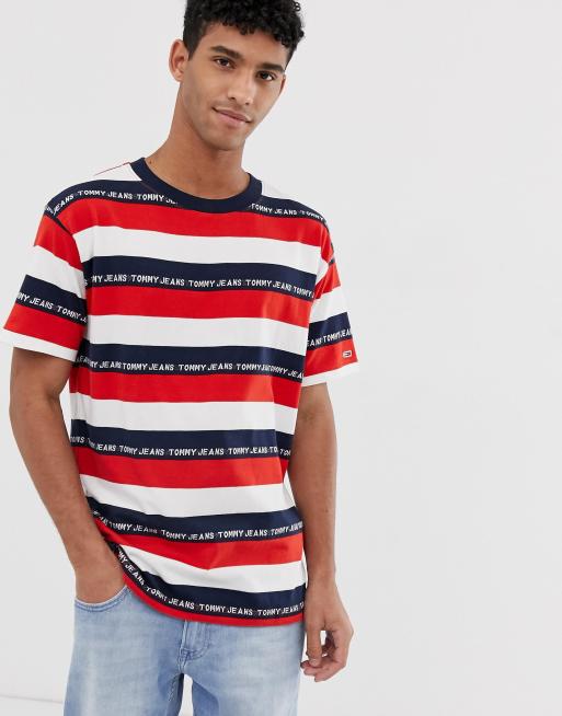 Tommy Jeans repeat logo striped t-shirt in red/navy/white