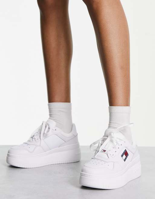 Tommy Jeans retro basket flatform trainer in white