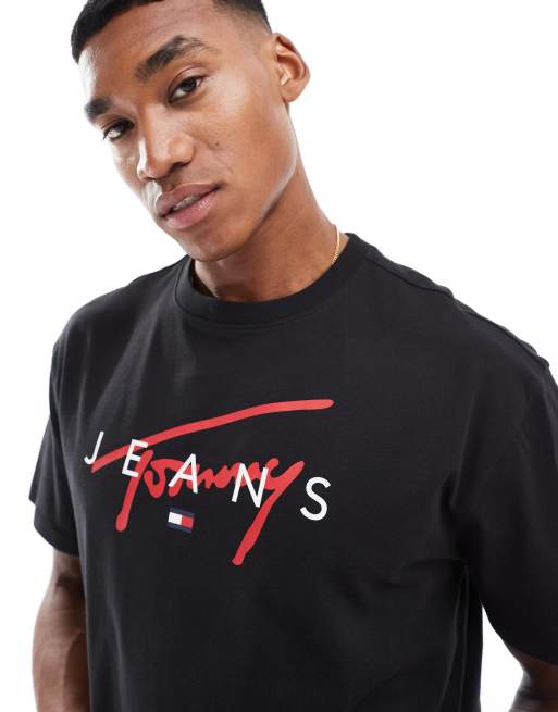 Tommy Jeans Signature Logo Crew Neck T-Shirt in Black