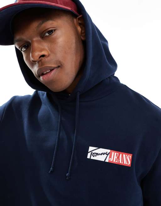 Tommy Jeans Signature logo drawstring hoody in navy blue
