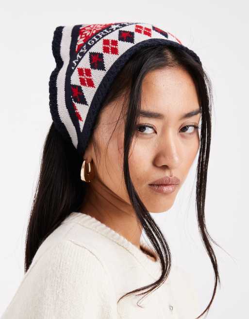 Tommy Jeans Tommy Girl fair isle knitted bandana in multi