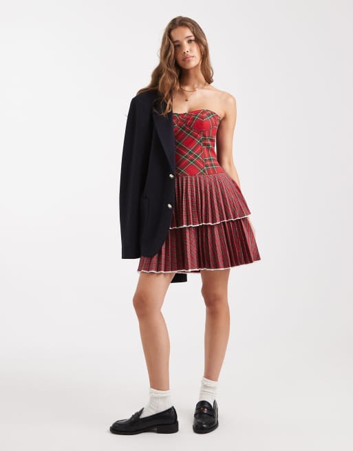 Tommy Jeans Tommy Girl tartan bustier dress in red