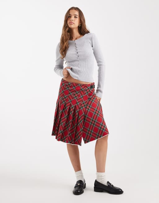 Tommy Jeans Tommy Girl tartan midi skirt with buckle detail in red