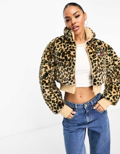 Tommy Jeans ultra cropped faux fur jacket in leopard print