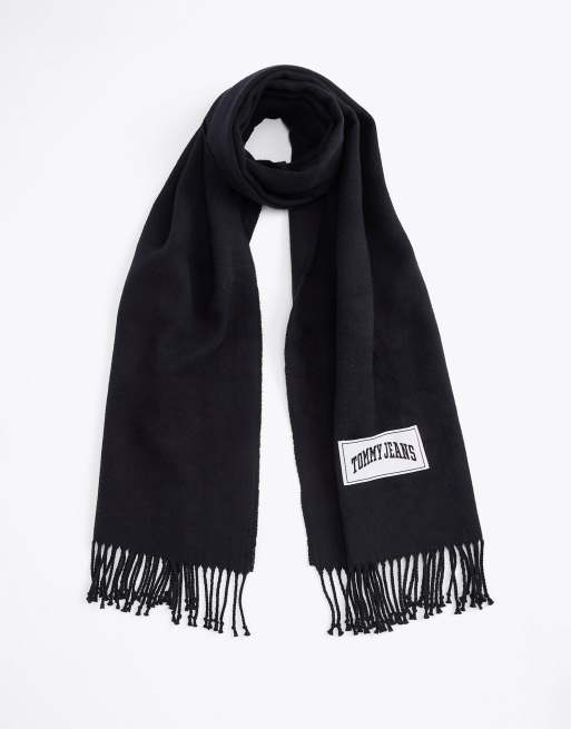 Tommy Jeans Varsity logo fringe scarf in black