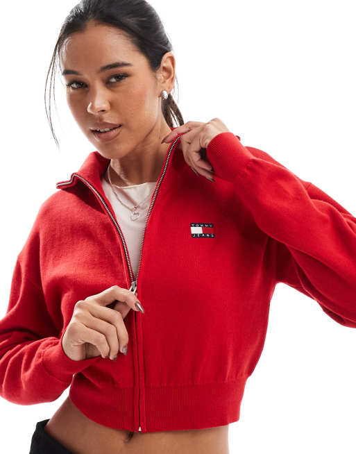 Tommy Jeans Zip-thru relaxed cardigan in bright red
