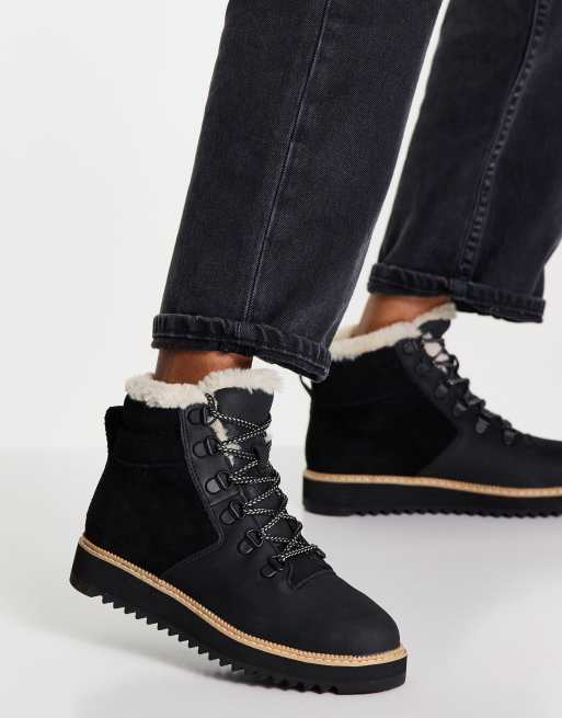 TOMS Mojave waterproof borg lined suede lace front boots in black