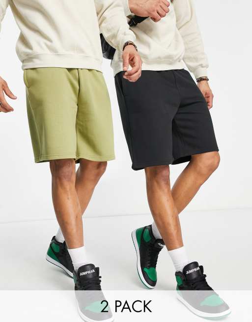 Topman 2 pack oversized shorts in black and khaki