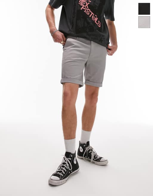Topman 2 pack skinny chino in black and light grey
