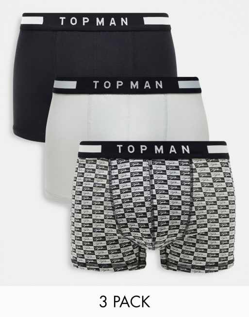 Topman 3 pack boxers in grey, print and black