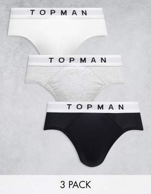 Topman 3 pack briefs in black, white and grey marl with white waistbands