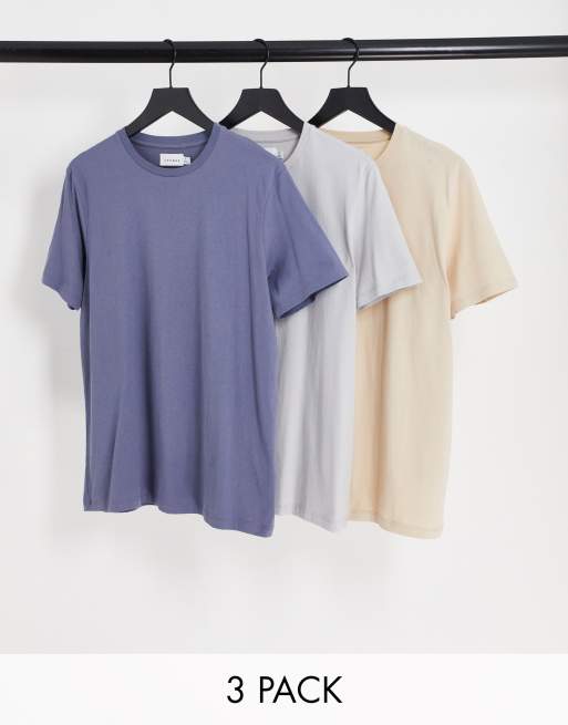 Topman 3 pack classic t-shirt in blue, light grey and stone