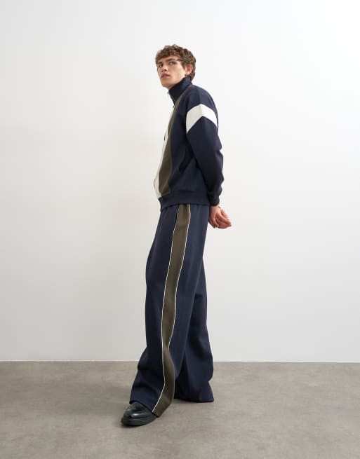 Topman baggy fit panelled pique jogger in navy