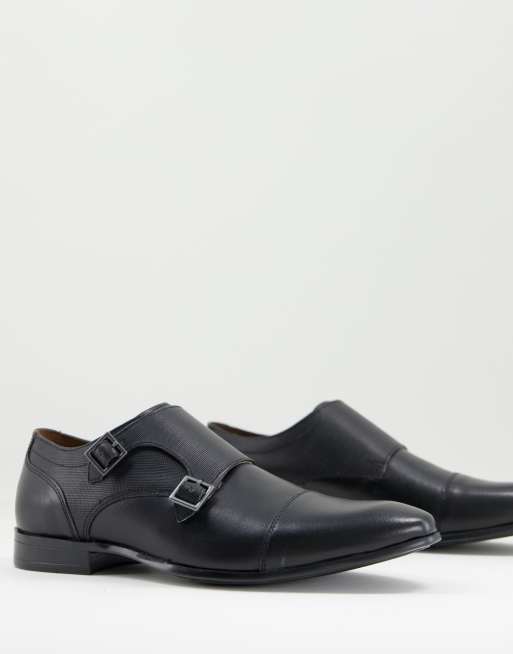 Topman black leather bright monk shoes