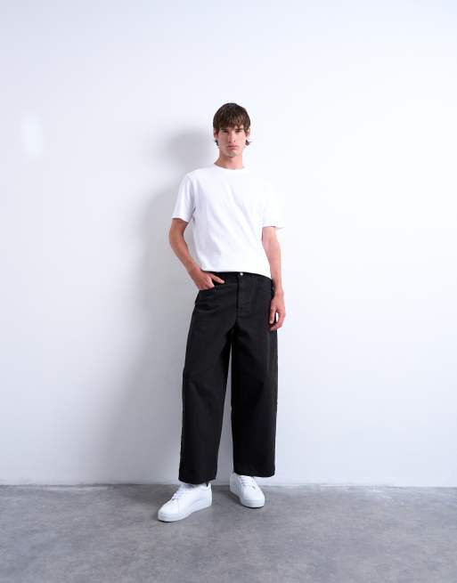 Topman canvas barrel trouser in black