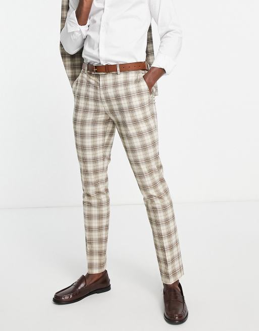 Topman check slim suit trousers in tan