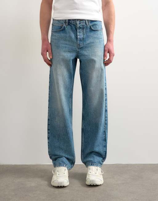 Topman circular design rigid straight jean in mid wash